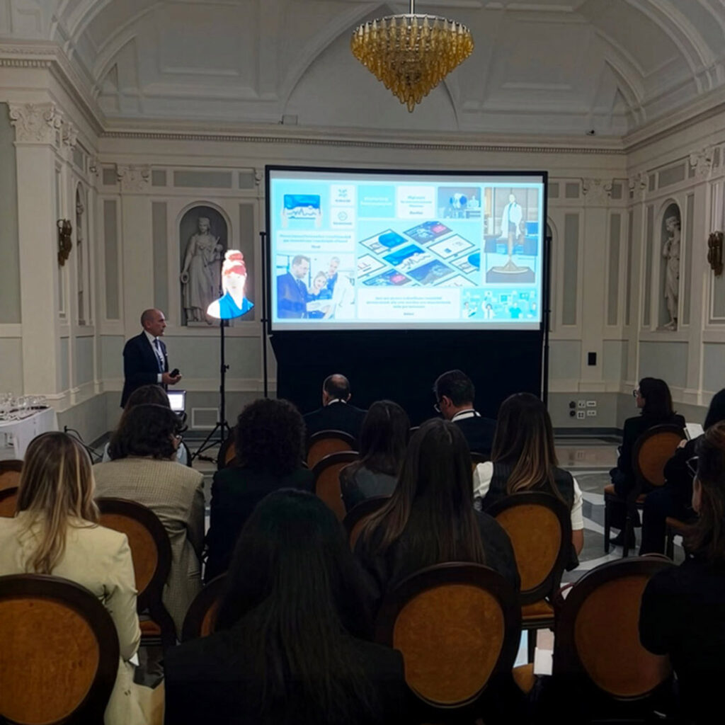 Durante l’incontro, il nostro CEO Antonio Franzese ha tenuto uno speech in dialogo con Linda, la nostra avatar AI, condividendo con il pubblico i risultati di alcuni progetti già attivi e le prospettive che l’AI può aprire per aziende farmaceutiche, CRO, enti sanitari e associazioni di pazienti.