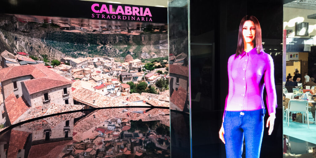 Nel 2025, la Regione Calabria ha scelto un approccio radicalmente nuovo: trasformare lo stand in un’esperienza immersiva e guidata da AI. Un progetto che abbiamo firmato noi, dalla visione alla realizzazione.